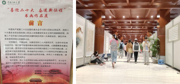 此次新生杯的主题是“喜迎二十大,奋进新征程”,同学们以高昂的热情根据主题进行了创作,通过作品弘扬国粹、展现风采。以书画会友,各色不同风格的作品谱响了书画艺术的乐章,奏出了同学们心中的爱国赤诚。
