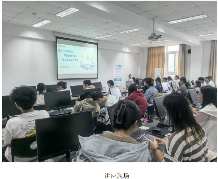 为积极响应智慧科研发展趋势,推动人工智能技术与学术资源深度融合,提升我校读者在数字环境下的科研效率与创新能力,2025年9月25日15时,图书馆在北书院四楼信息素养培训室成功举办以“智慧科研新范式:万方数据平台与AI工具融合应用”为主题的培训讲座。此次讲座作为本学期“信息素养培训系列讲座”的第二场活动,特邀万方数据专职讲师马倩担任主讲,吸引了众多同学踊跃参与。